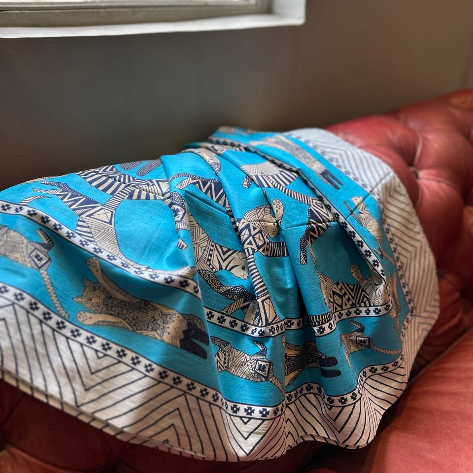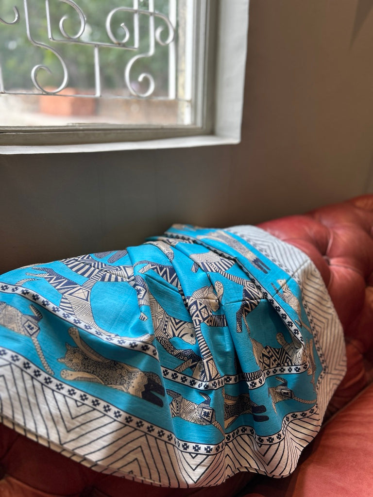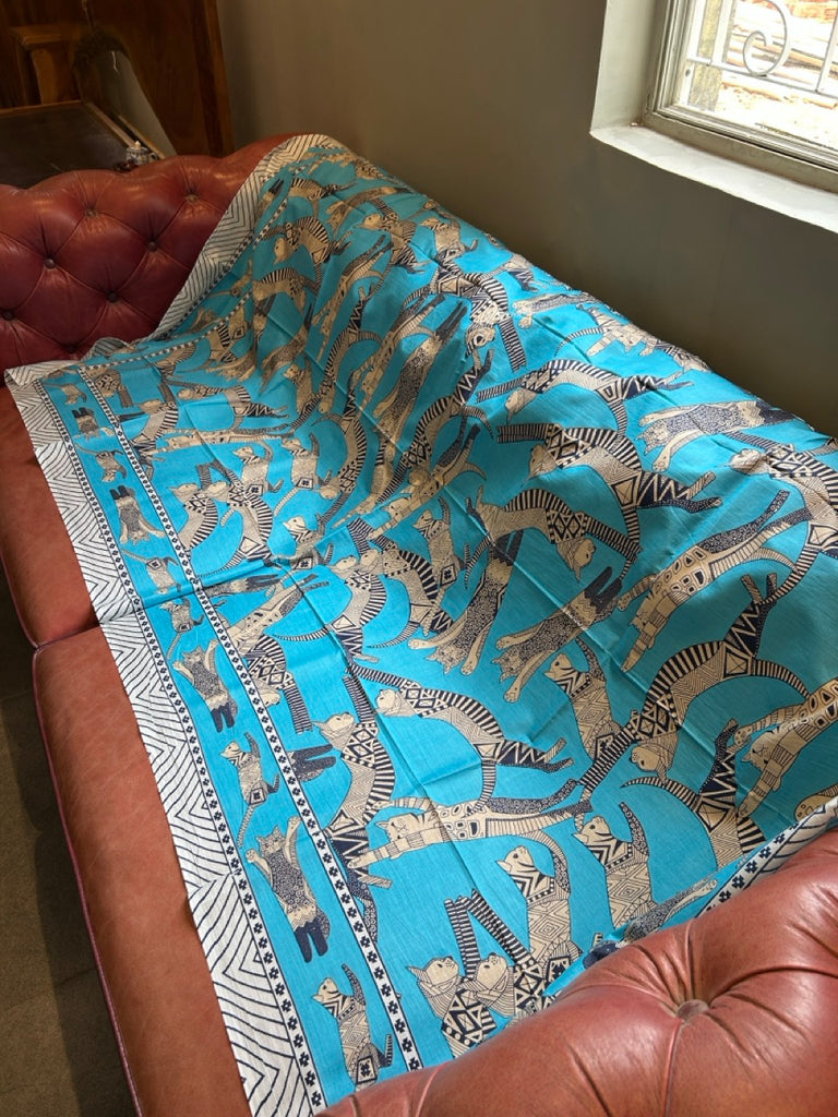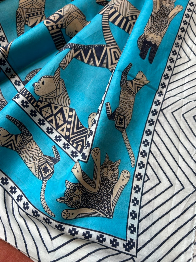インド綿大判ストール [ドゥパタ] フライングキャット 水色 htm150423