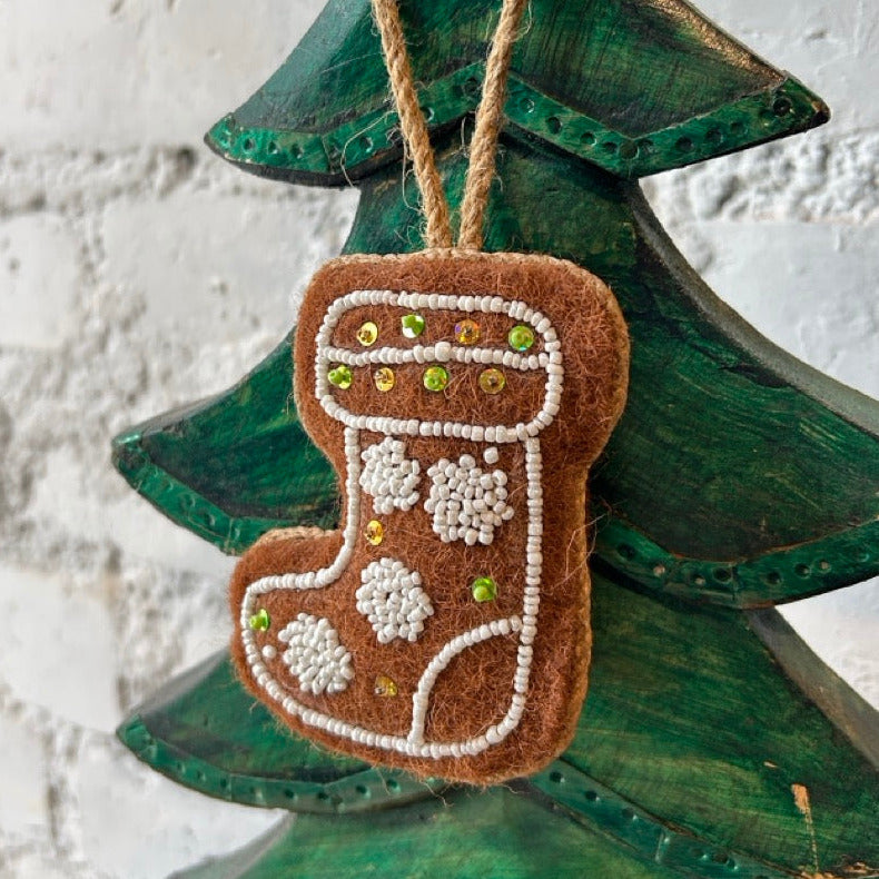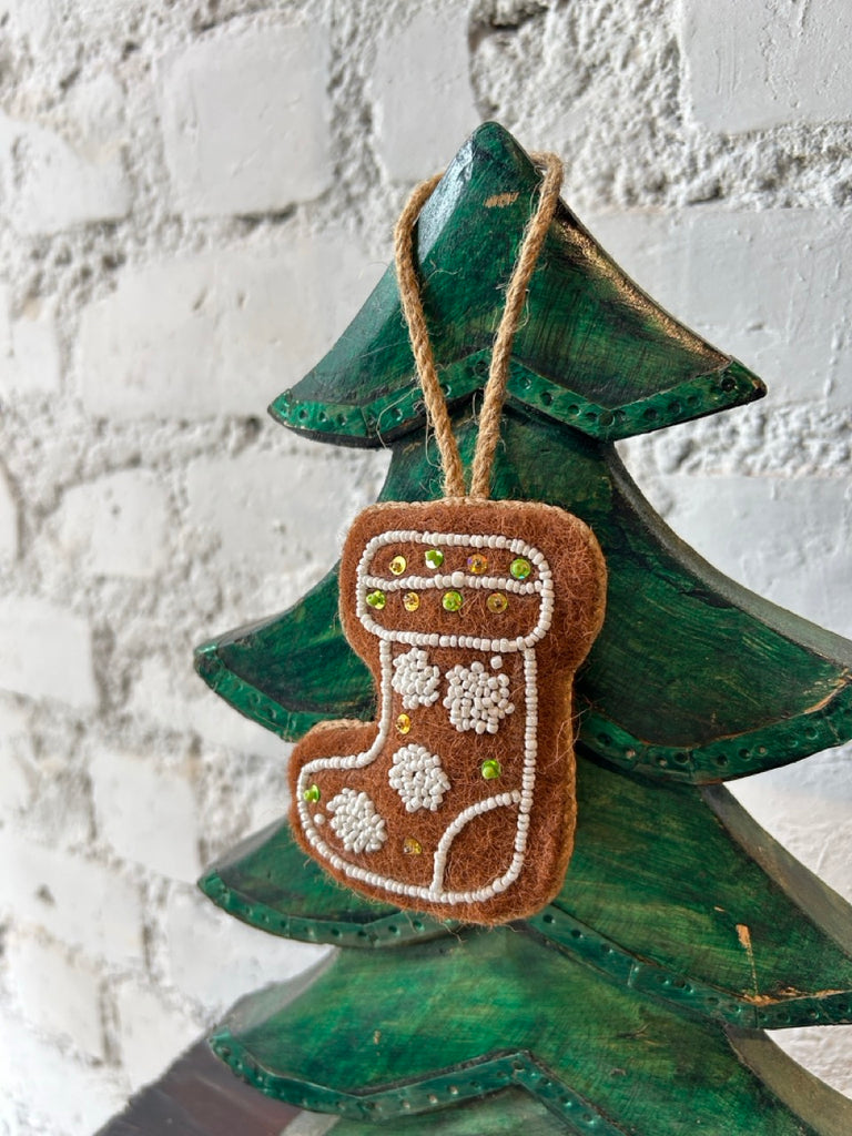 ハンドメイド フェルトオーナメント ブーツ/ブラウン htm150559