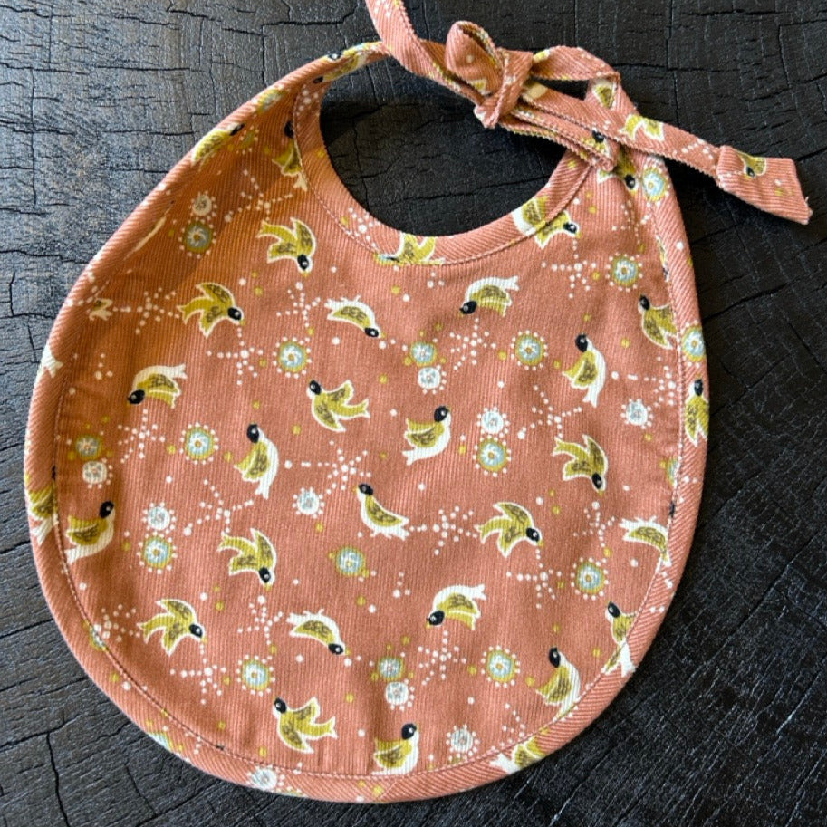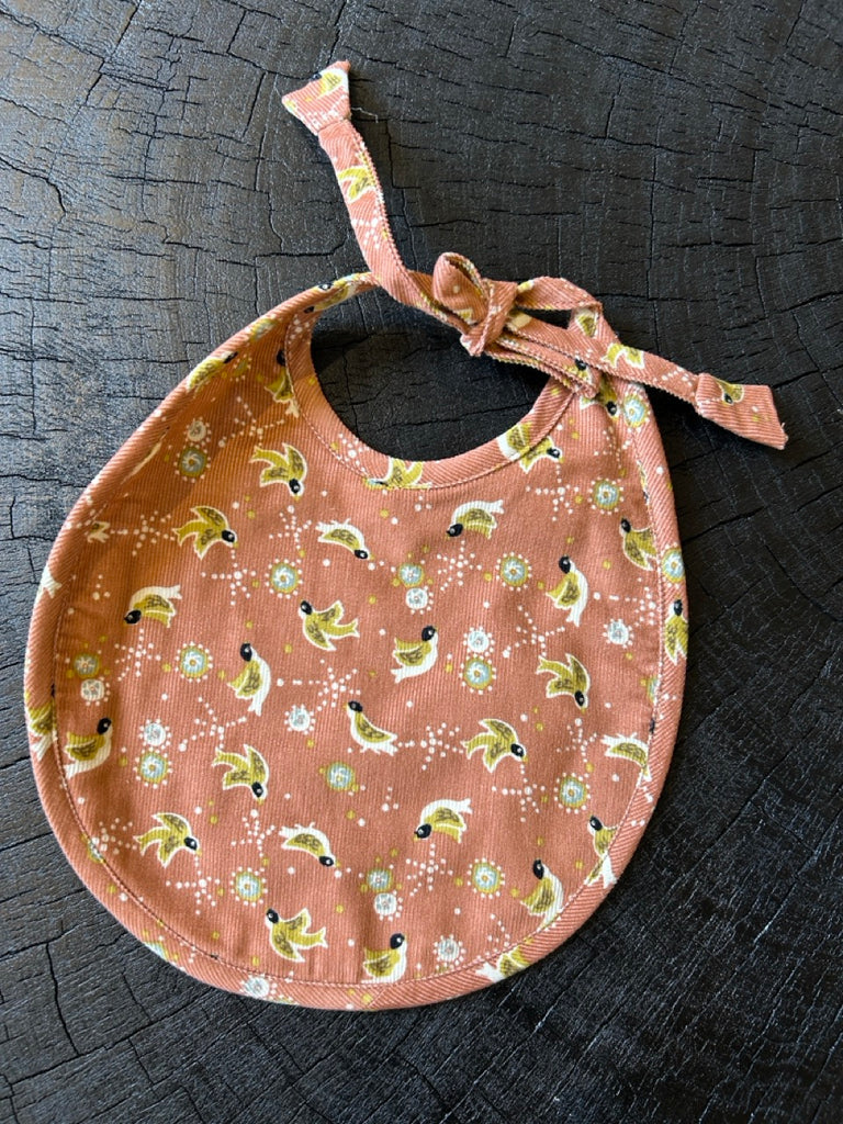 オモテ:ピンクのコーデュロイ地に小鳥さん柄