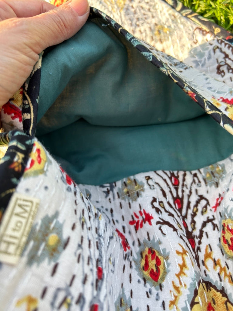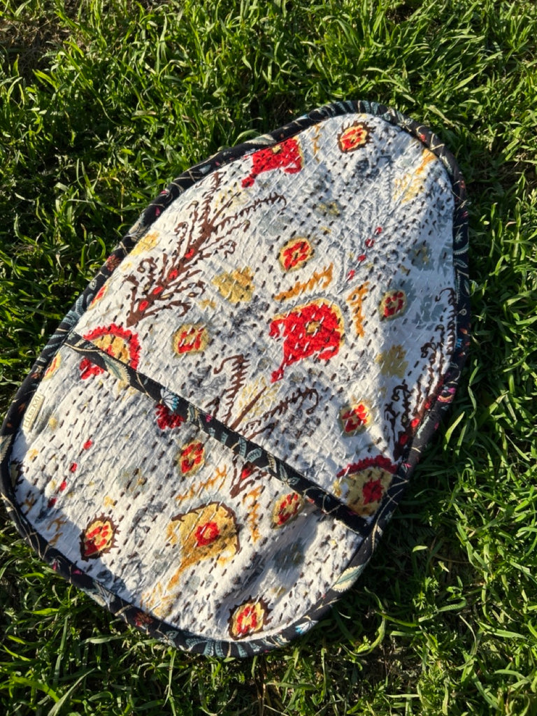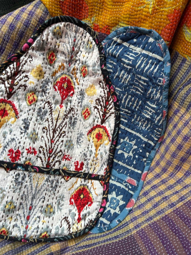 薄いキルティング仕上げ。柔らかく暖かさが長持ちします(3~4時間位)、お布団の中に入れると朝までホッカホカです。