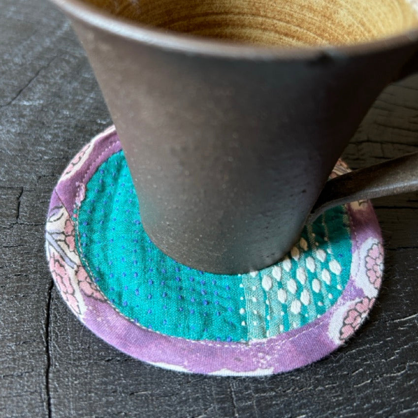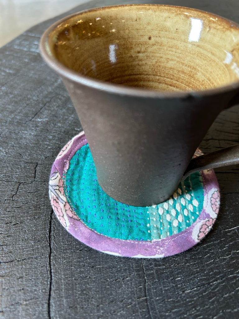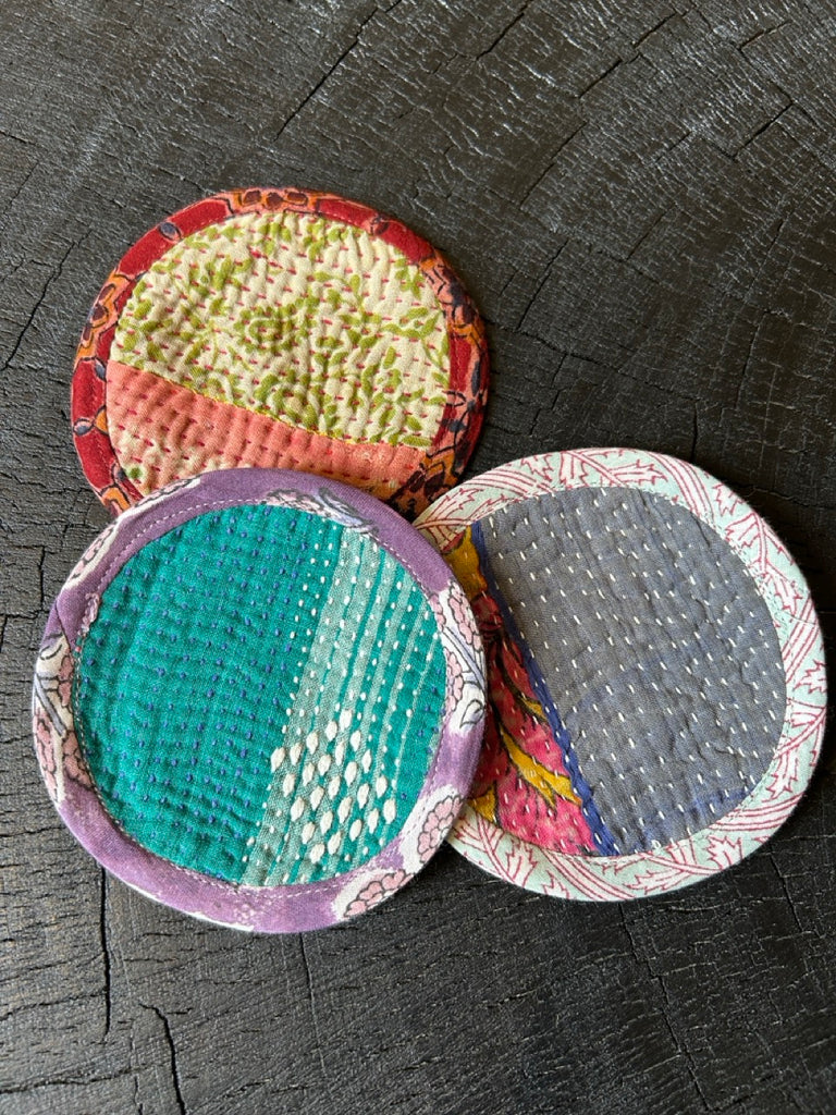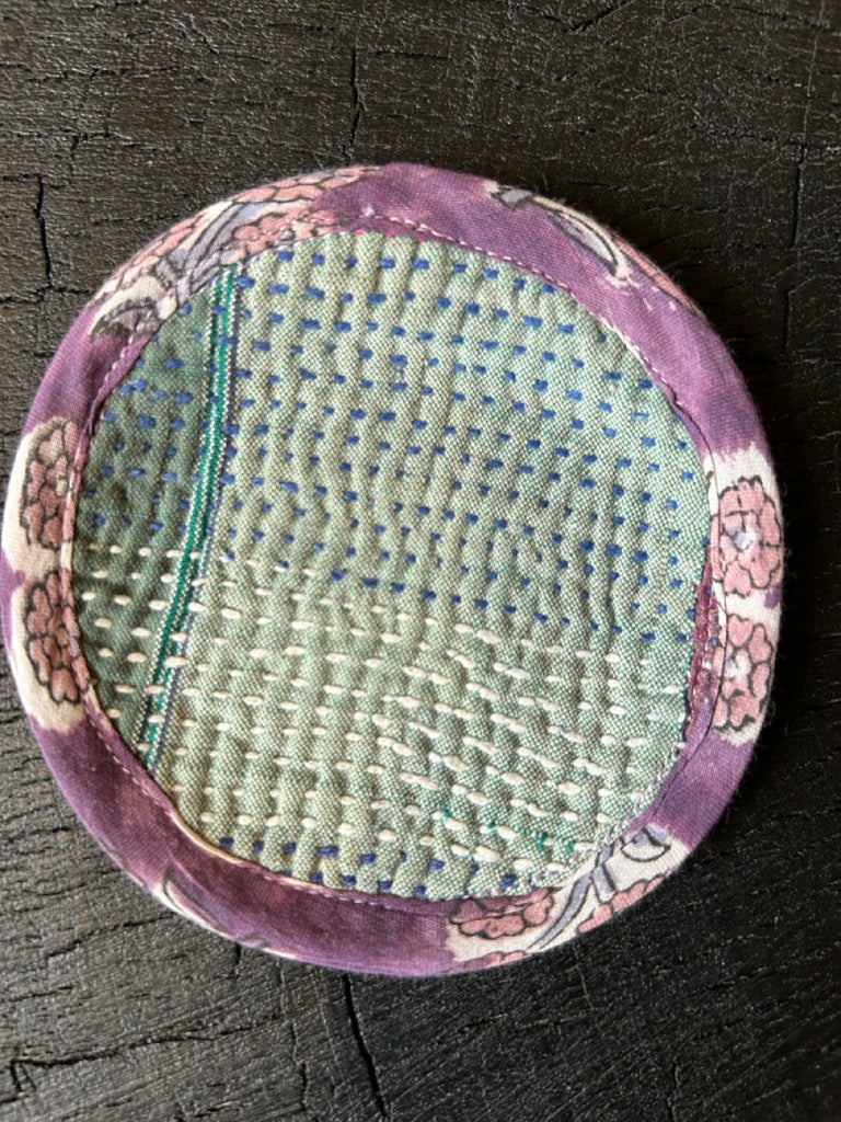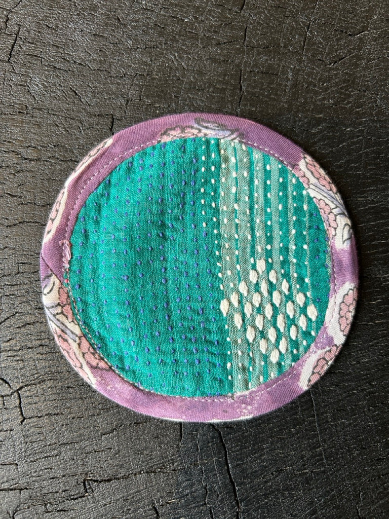 生活で使い古したサリーや生地等を貼り合わせて刺し子します。