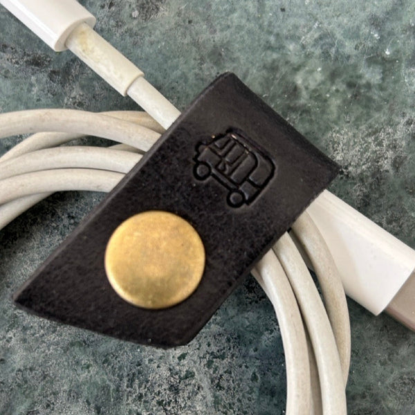 インドのバッファローレザーで作ったレザーコードクリップです。