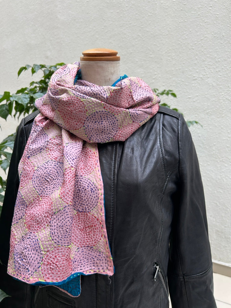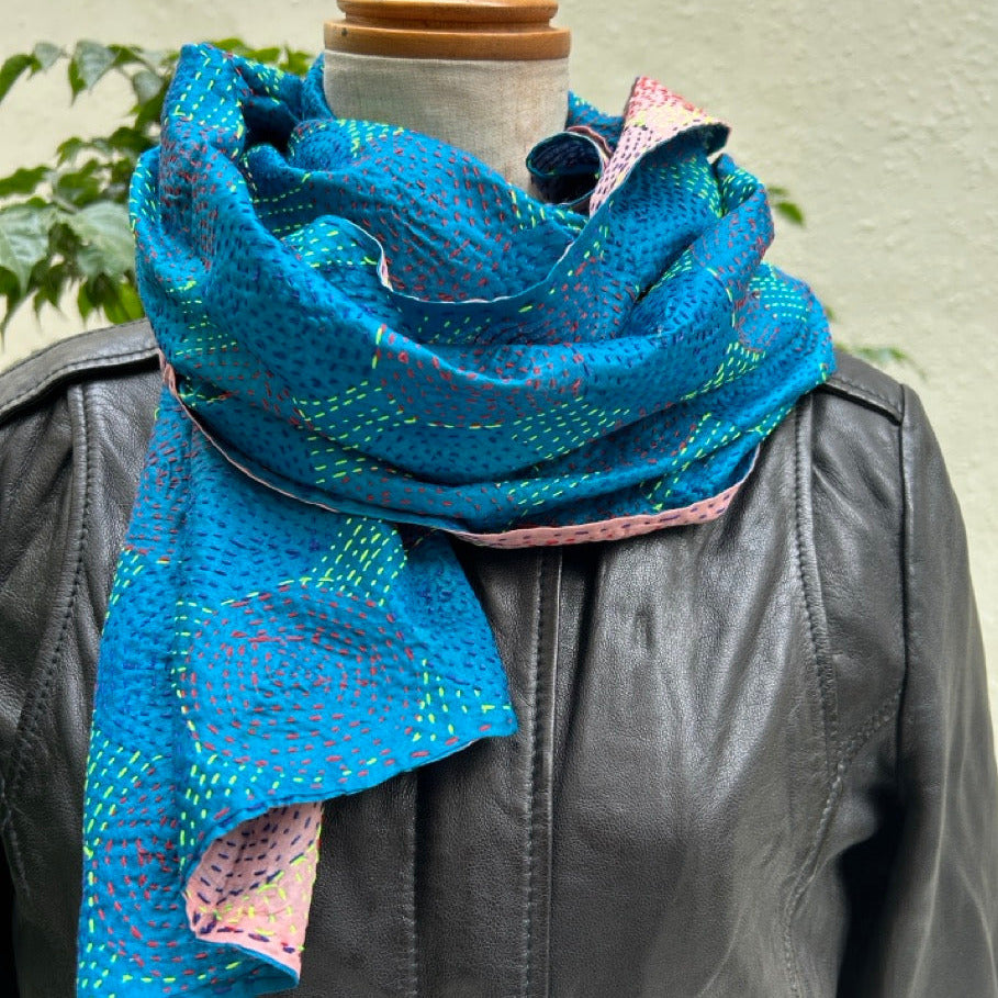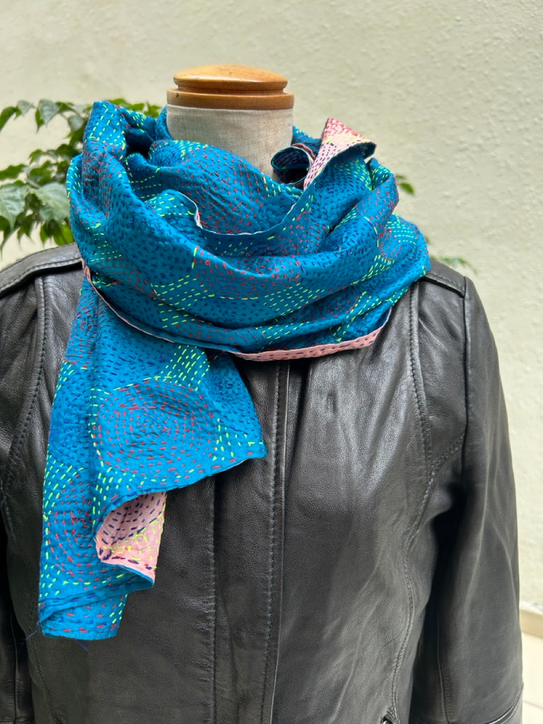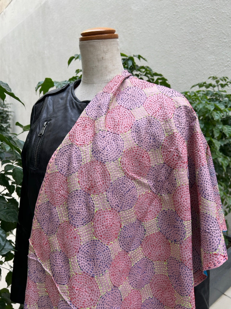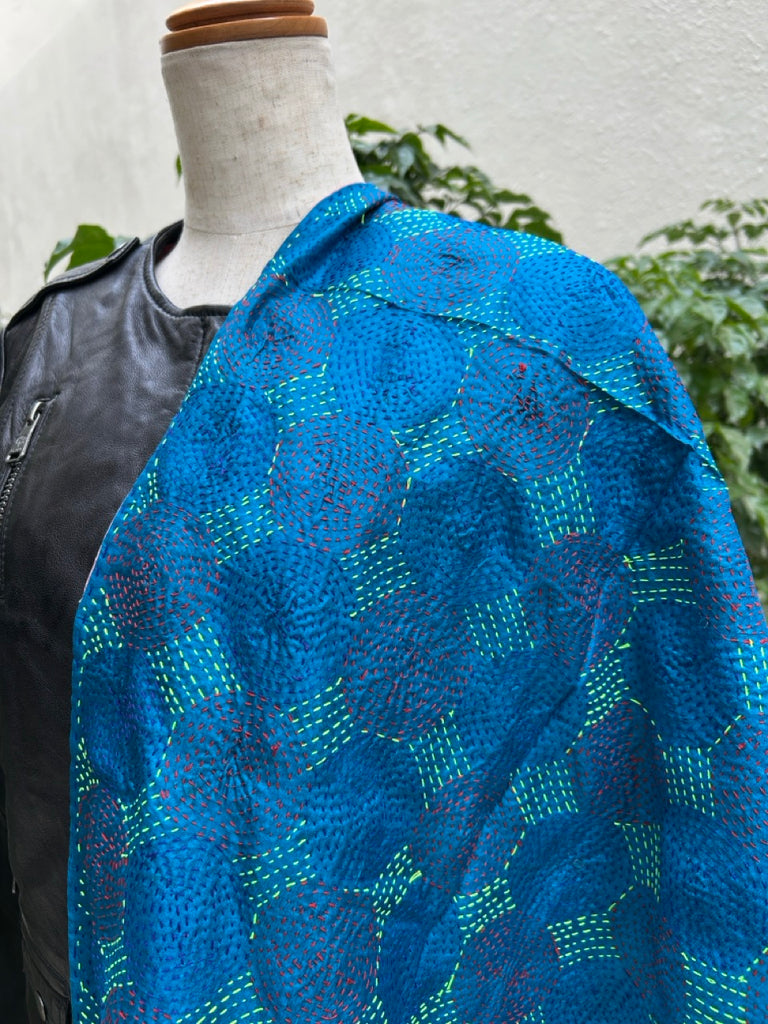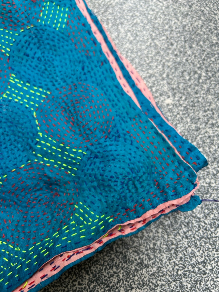 刺し子(カンタ刺繍)を施したインドのアップサイクル生地です。