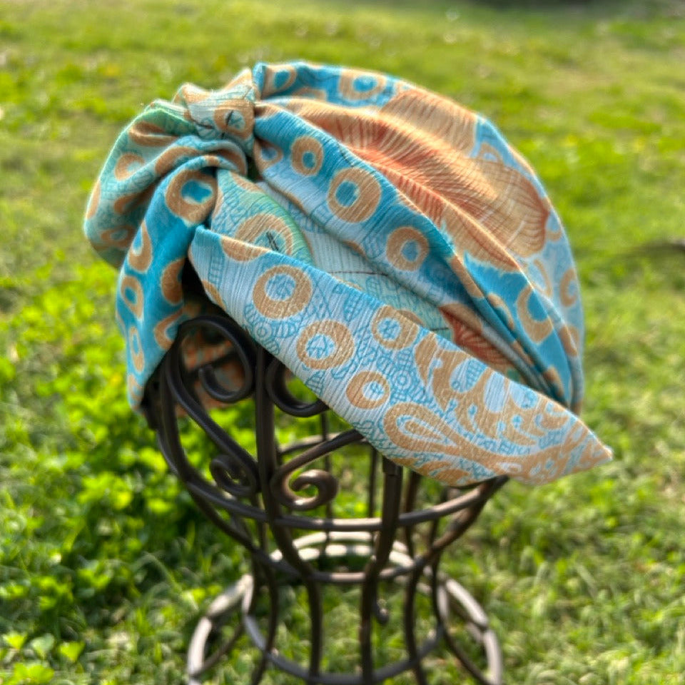 少し昔のサリーの生地で作られたヘアバンドです