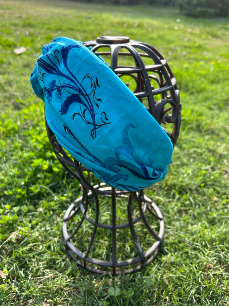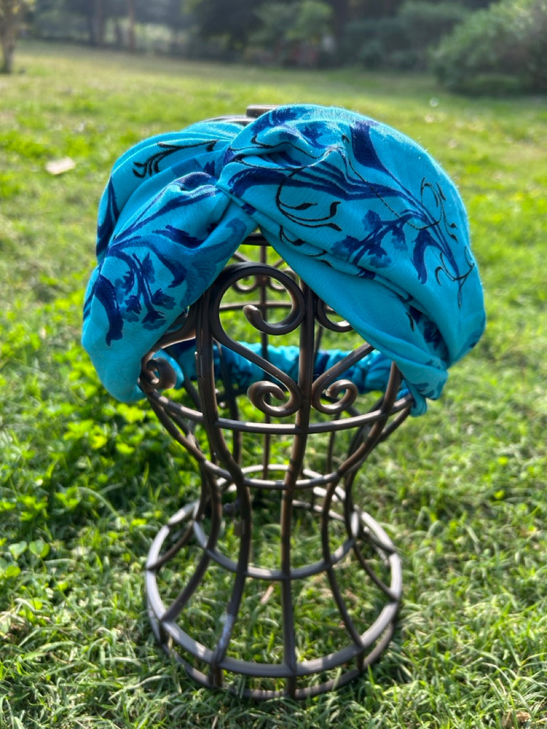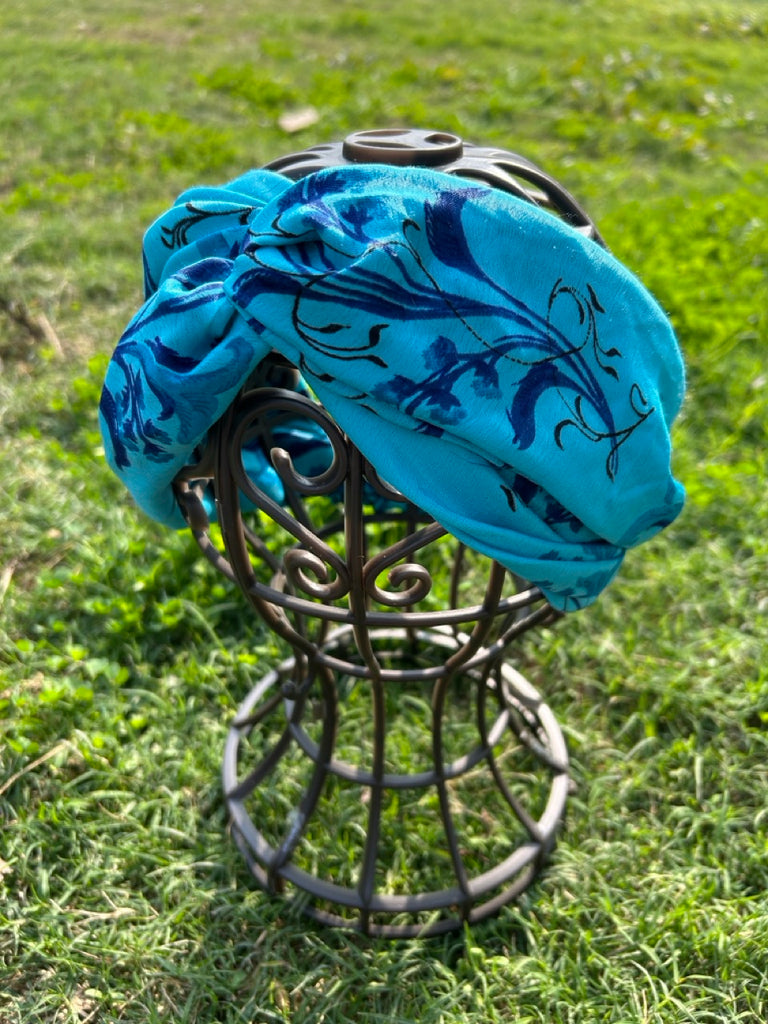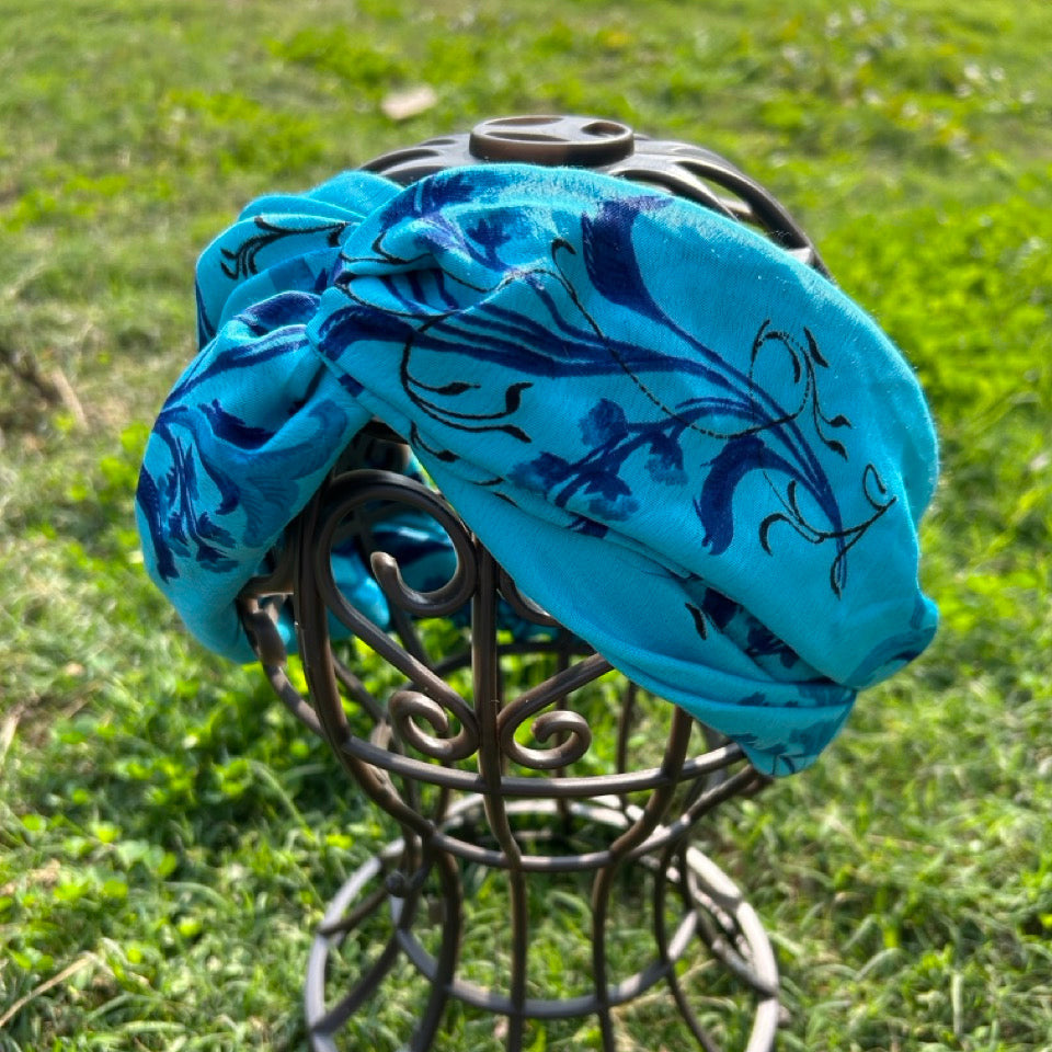 サリー生地のレトロヘアバンド ブルーフラワー htm150558