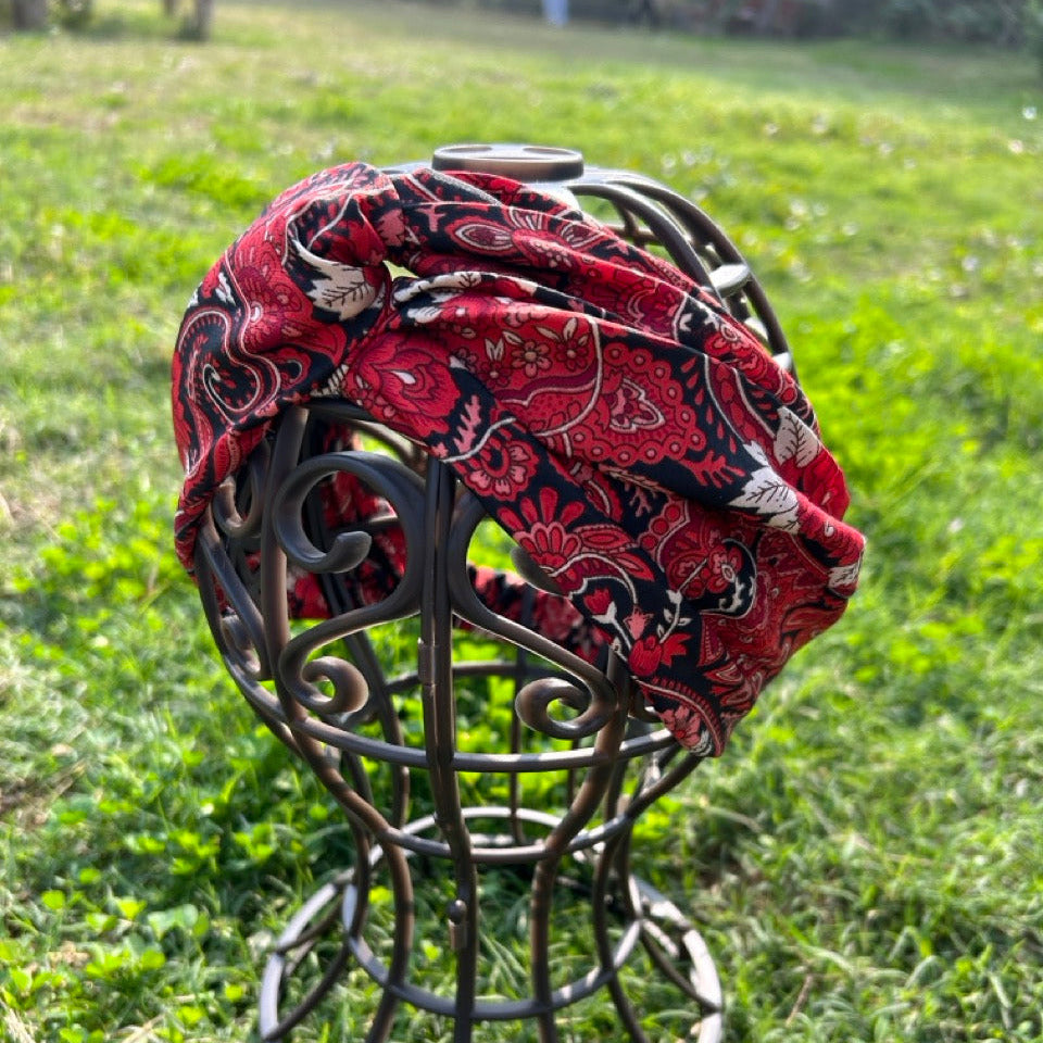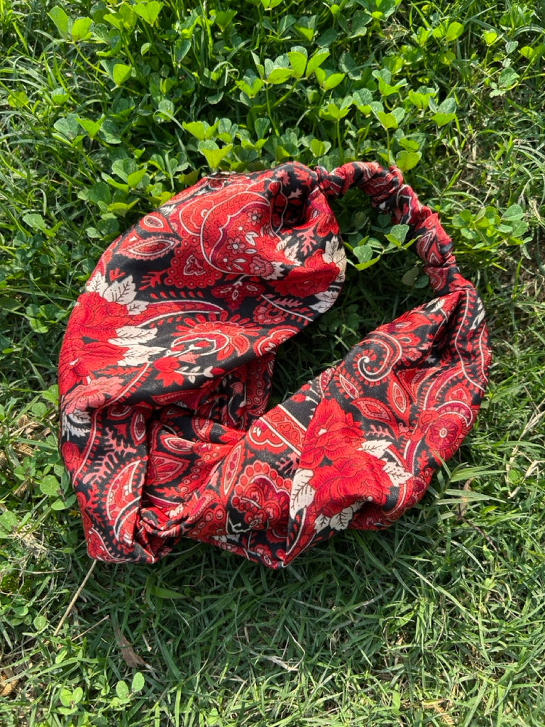 サリー生地のレトロヘアバンド レッドペイズリー htm150558