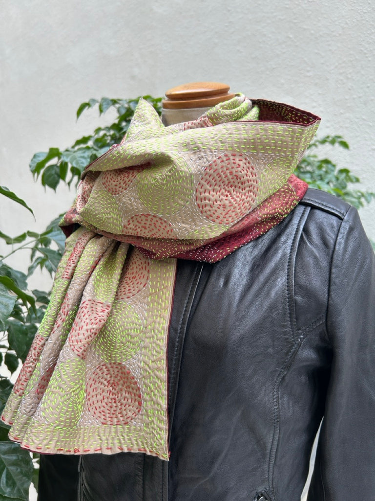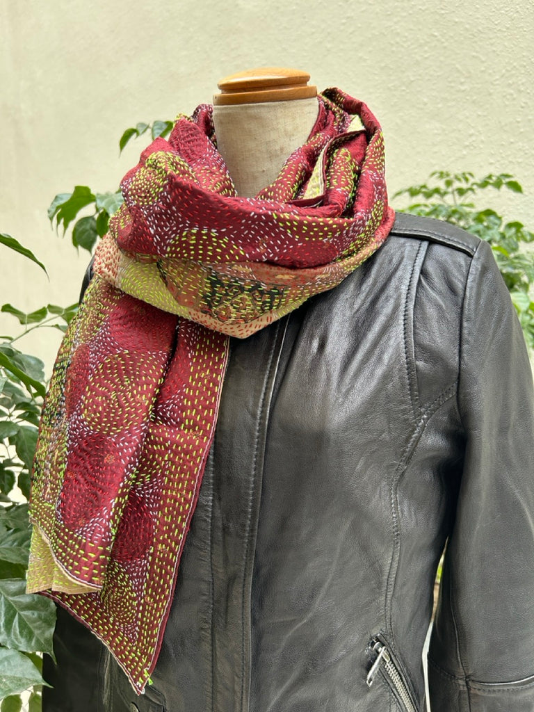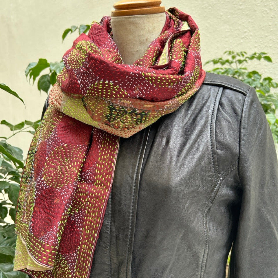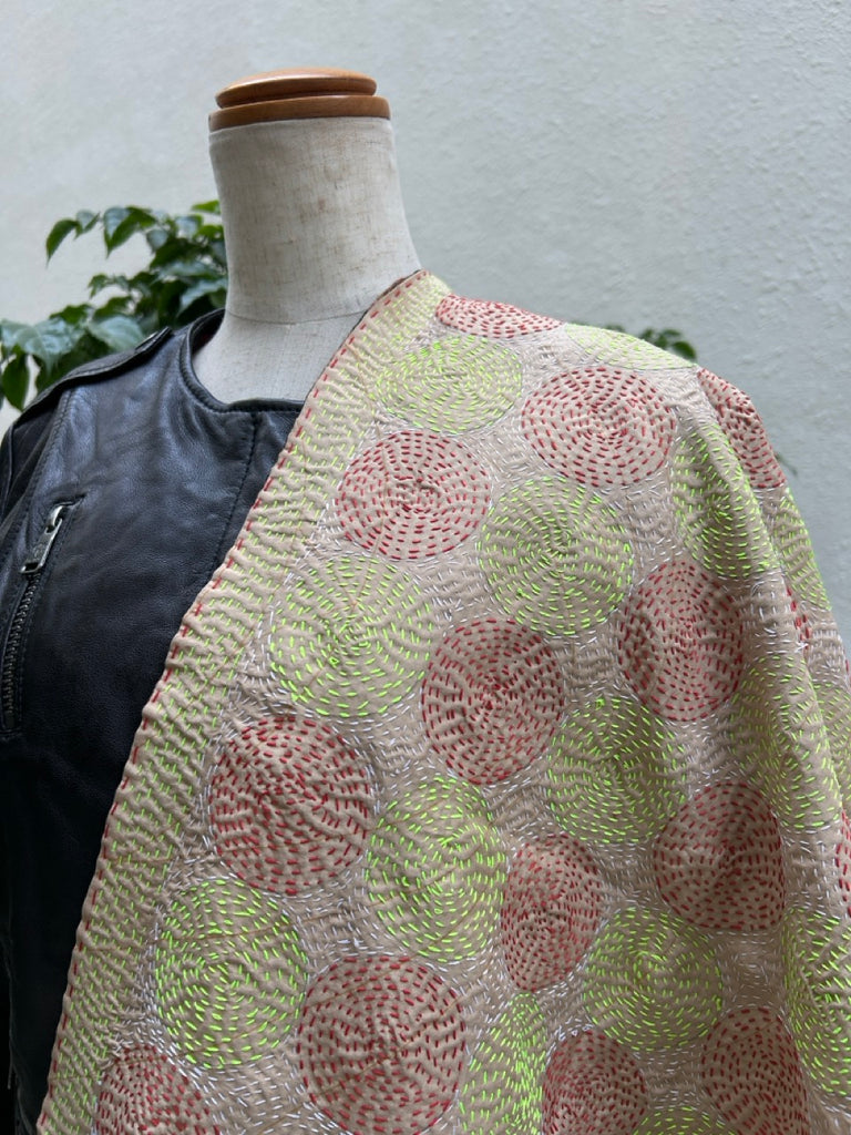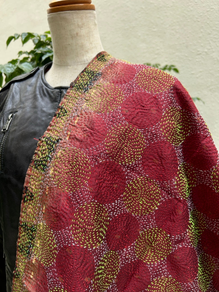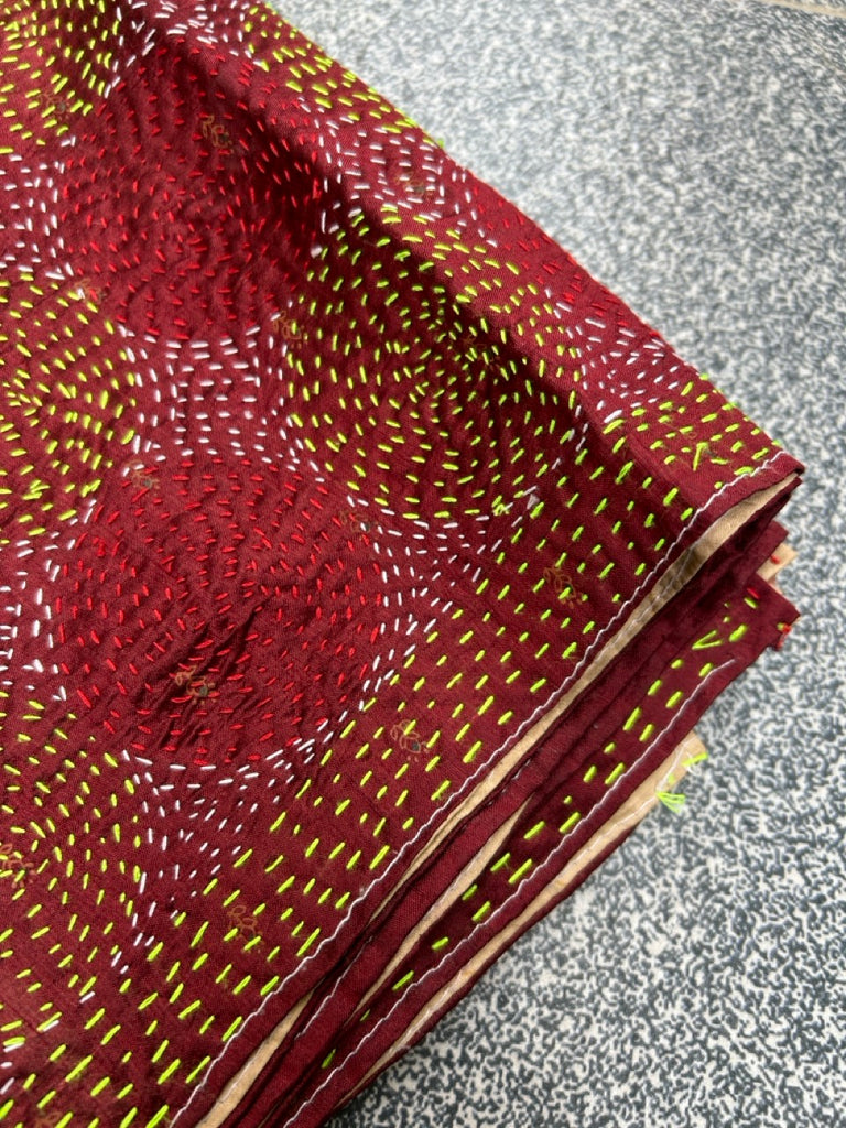 刺し子(カンタ刺繍)を施したインドのアップサイクル生地です。